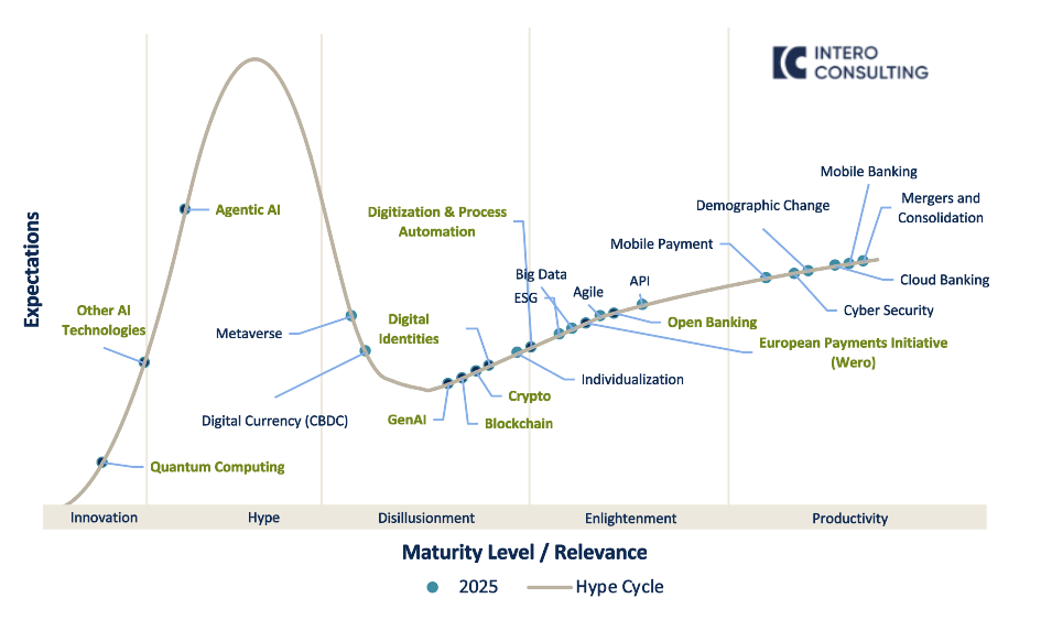 In this dynamic environment, it is crucial to stay up-to-date to maintain a connection with customers and the market. Therefore, this blog post aims to provide an in-depth look at current trends in the banking sector and their place in the classic hype cycle.