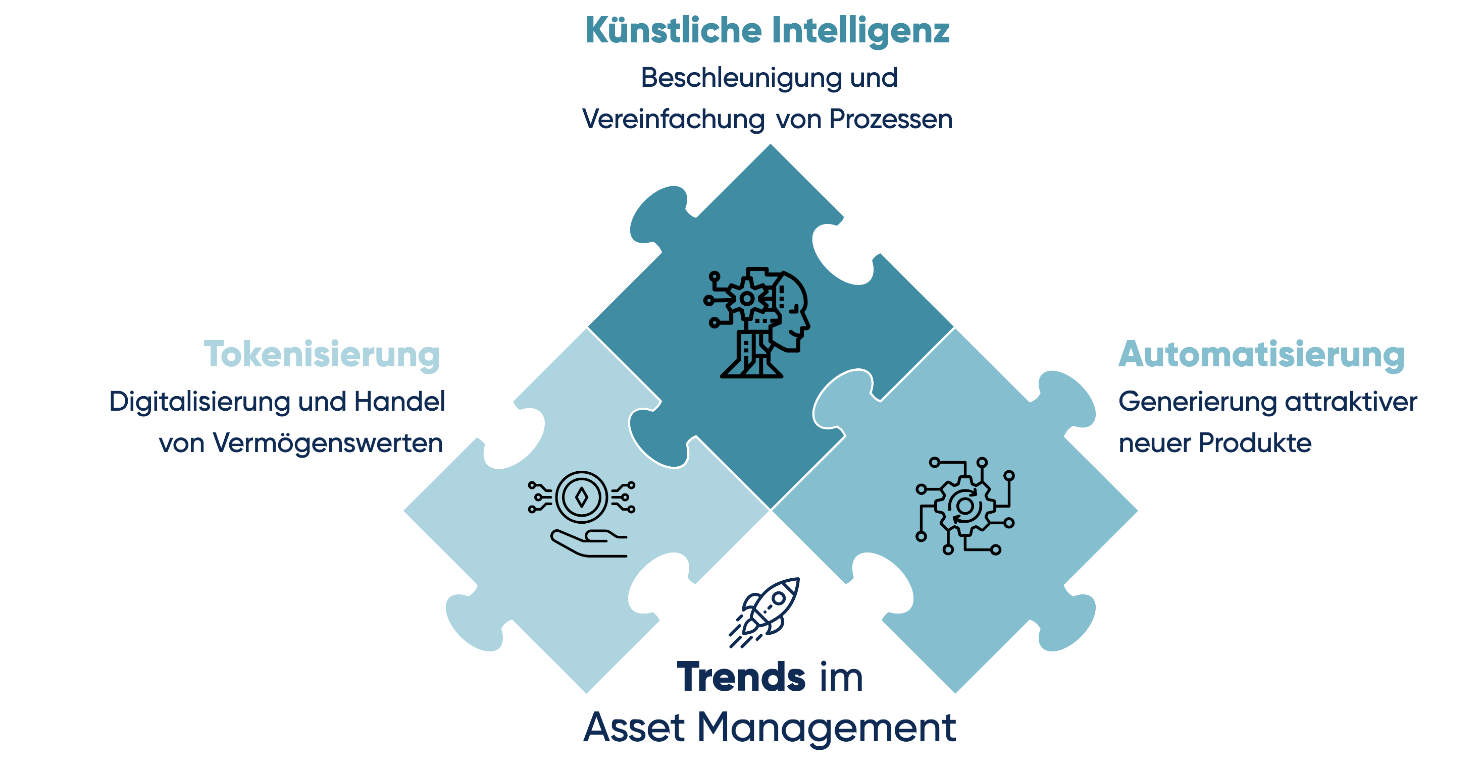 Asset Management nimmt eine zentrale Rolle in der Finanzindustrie ein – und die technologischen Veränderungen der vergangenen Jahre haben ihre Spuren hinterlassen. Ob es die Automatisierung von Prozessen, die bessere Nutzung der verfügbaren Daten oder die weitere Personalisierung der Anlagestrategien ist: Durch die technologische Weiterentwicklung ergeben sich große Chancen, aber auch die Risiken dürfen nicht außer Acht gelassen werden. Drei große Trend-Themen sind der Einsatz von Künstlicher Intelligenz, die fortschreitende Automatisierung innerhalb des Asset Managements und die Tokenisierung – im Zusammenspiel haben bereits diese drei Trends die Chance, die Branche zu revolutionieren.