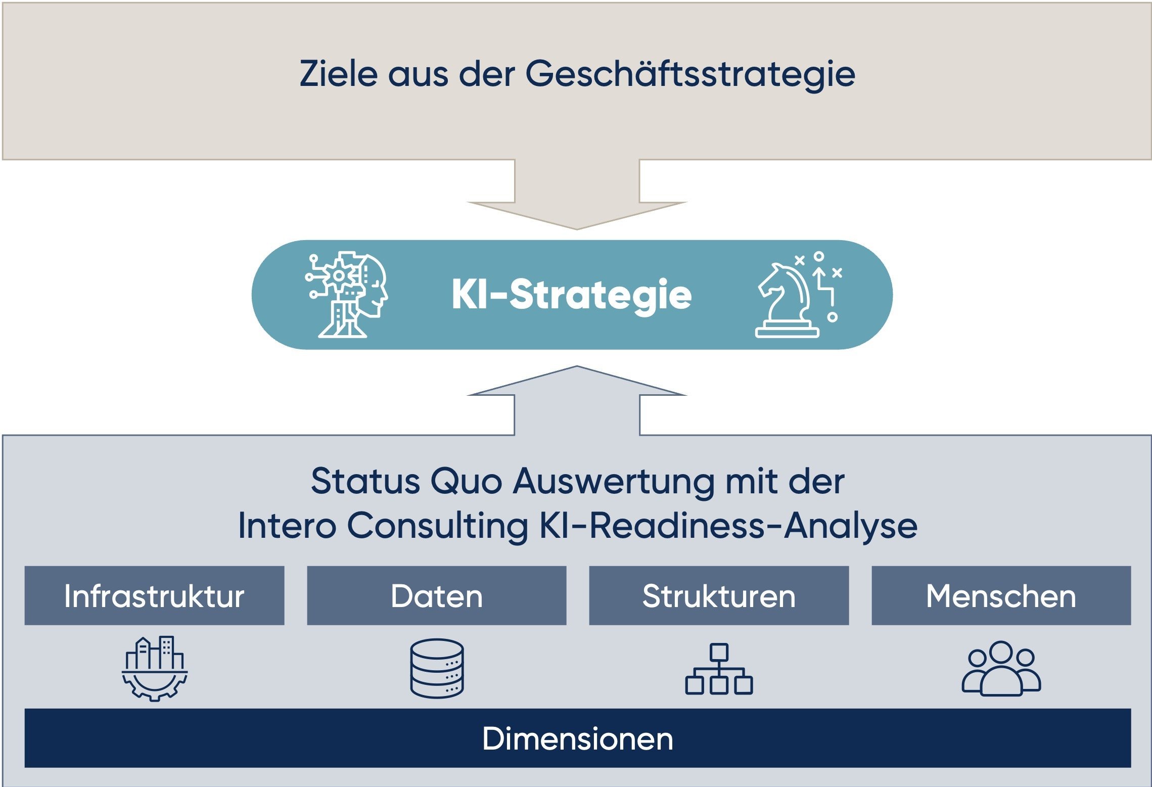 Die Antwort liegt in einer KI-Strategie, die systematisch aus der Geschäftsstrategie abgeleitet wird und konkrete Rahmenparameter für alle betroffenen Unternehmensbereiche definiert.